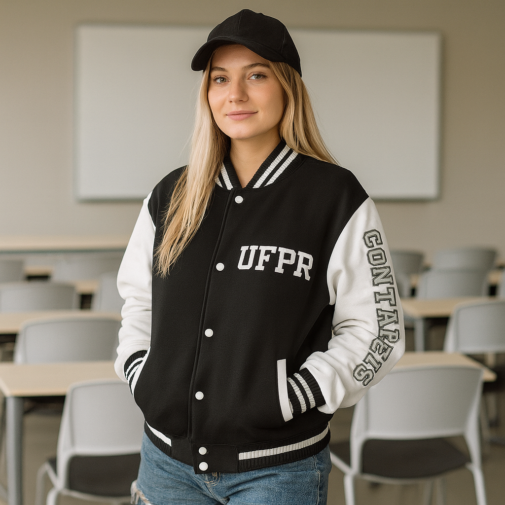 A jaqueta de moletom estilo college é um clássico entre os universitários,